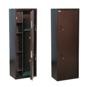 Оружейные шкафы предназначены для хранения оружия и боеприпасов. Все корпусы шкафов изготовлены из высококачественной холоднокатанной стали 1,5 мм, а двери из стали 2,0 мм и обрамлены профильной трубой 20х20 мм, изнутри закрыты листом 1,0 мм. Таким образом создается конструкция двери коробчатого типа, что придает ей особую прочность. Внутри шкафы оснащены дополнительным отделением для патронов (трейзером), который закрывается на дополнительный ключ.