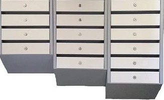 Ящик почтовый 2,3,4,5,6,7 и 8-ми секционный изготовлен из листовой стали толщиной 0,8 мм. Исполнение "стандарт" - цельносварной с задней стенкой, укомплектован почтовыми замками с двумя ключами. Дверцы ящика установлены на единой оси (на каждой дверце приварена осевая трубка, через которую проходит металлический стержень -ось). Таким образом становиться невозможно сломать одну дверцу. Для этого необходимо сломать целый шкаф, а это уже намного сложнее. Покрытие полимерное порошковое. Цвет серый RAL 7035. Возможно цвет изменить или сделать комбинированным (корпус одного цвета, а дверцы другого).