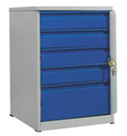 Тумба ТЯ иимеет четыре выдвижных ящика, верхний из которых оснащен замком.